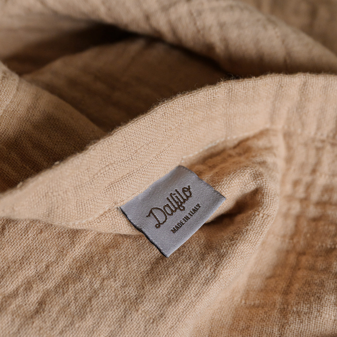 La mussola di cotone a doppio strato è un tessuto leggero e vivo, riconoscibile per la sua superficie naturalmente increspata e per la morbidezza che invita al tocco.