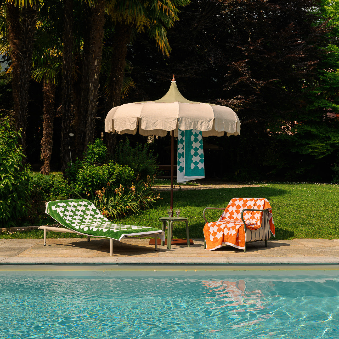 Ogni capo della Linea mare Dalfilo nasce a telaio, dall’incontro tra fili bianchi e colorati, tinti in filo con tecnica IDH per garantire massima resistenza a sole, cloro, agenti atmosferici e lavaggi frequenti.