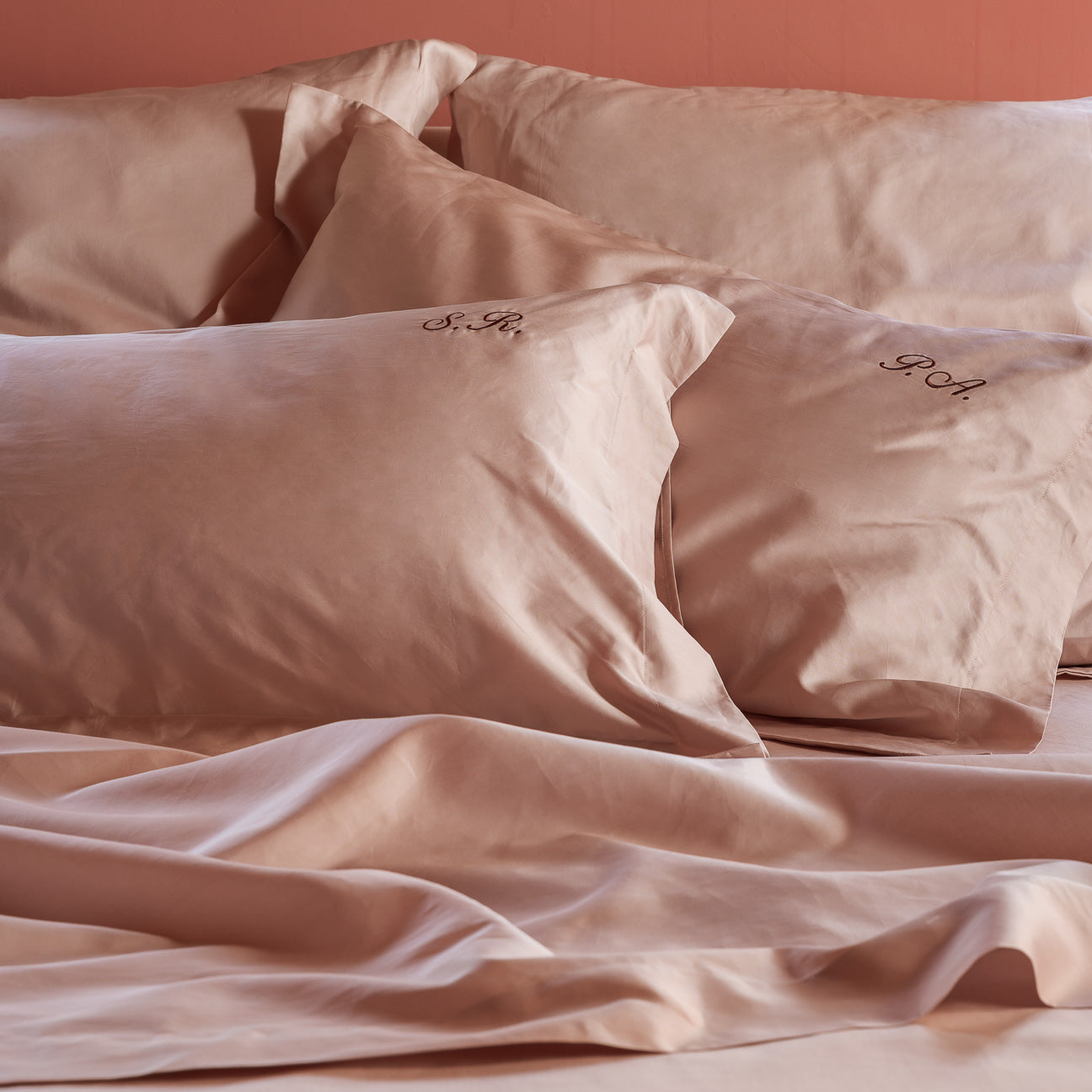 La bellezza del raso Dalfilo non è solo nella sua straordinaria eleganza, ma anche nella possibilità di renderlo unico. Ricama le tue iniziali e quelli di chi ami sul tuo Completo in Raso.