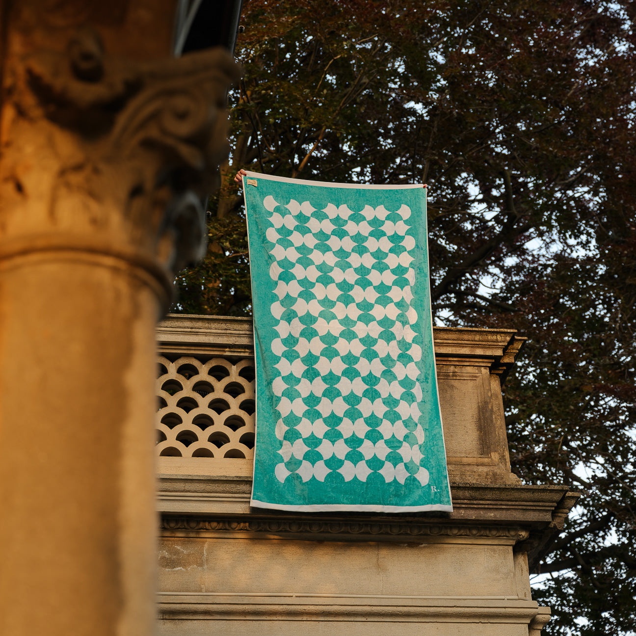 - Pattern geometrico con orlo da 3,5 cm