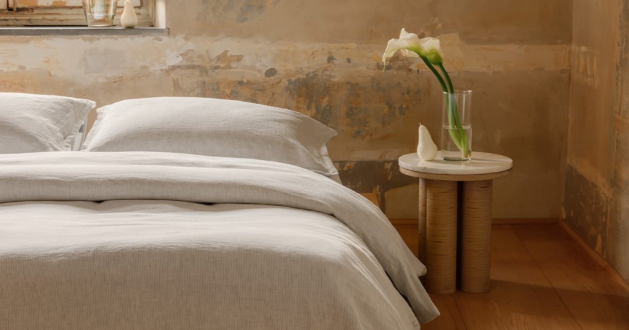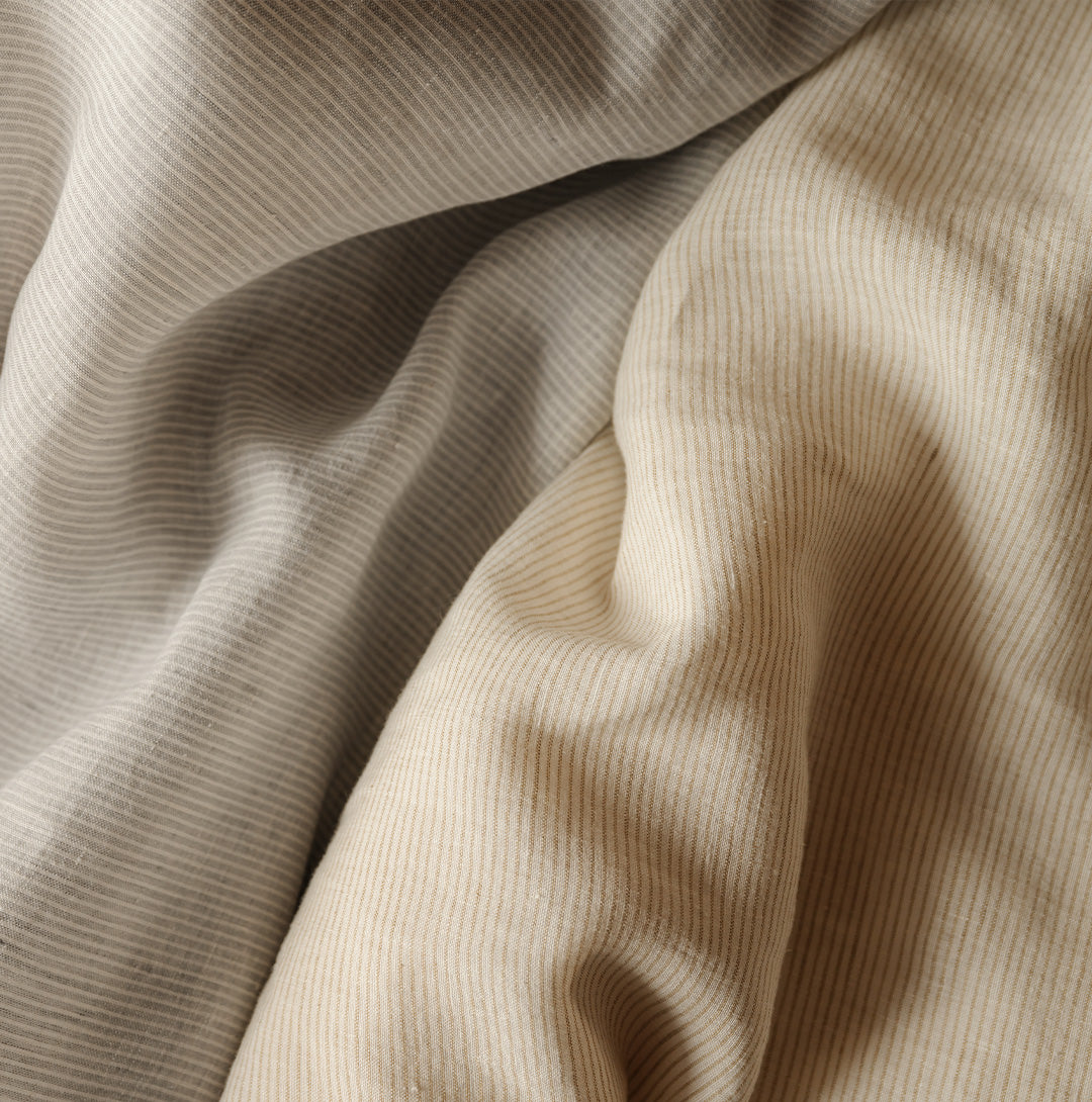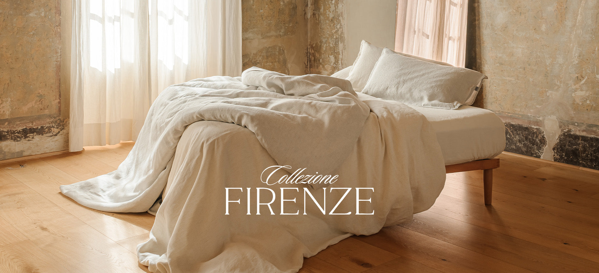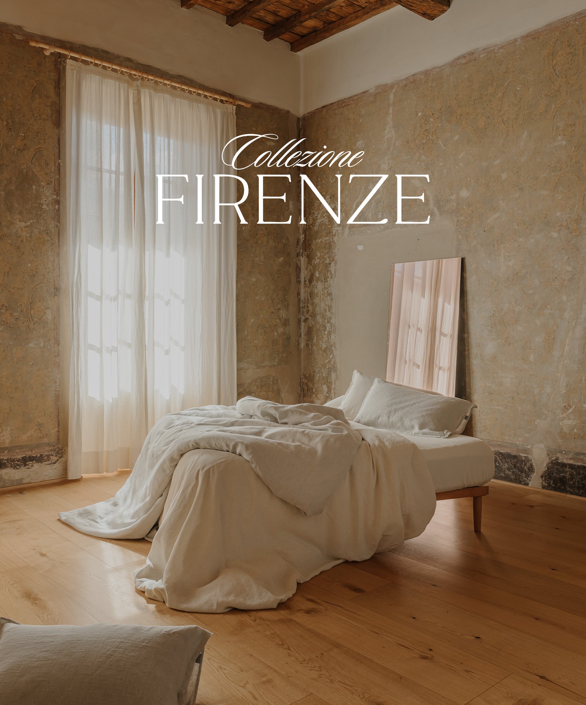 Tra le geometrie solenni di Santa Maria Novella e le facciate maestose di Santa Maria del Fiore, nasce Collezione Firenze: lenzuola in puro lino, dalle righe sobrie, raffinate, simboliche. Due varianti cromatiche essenziali, ispirate alla pietra serena, all’alabastro, ai chiaroscuri delle navate gotiche per un’estetica silenziosa, fatta di ordine, rigore e presenza.