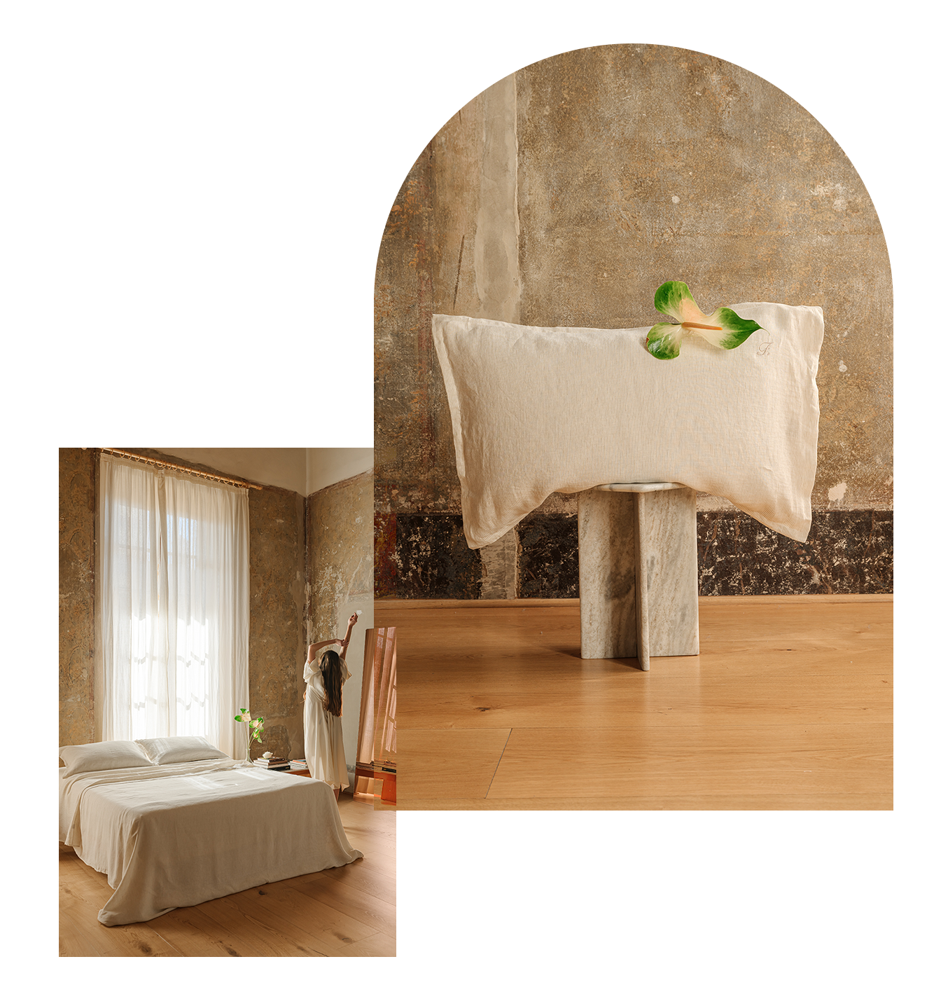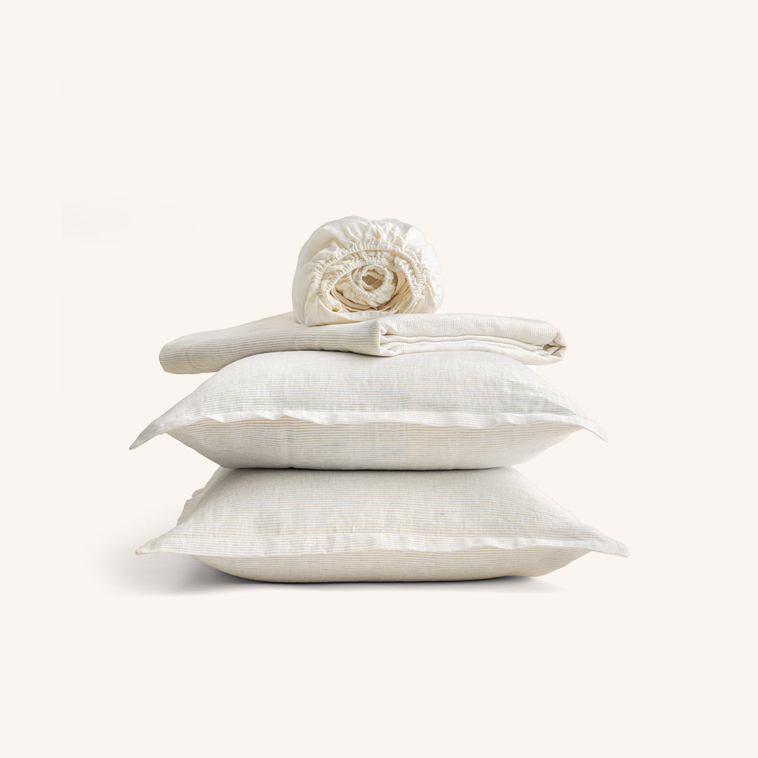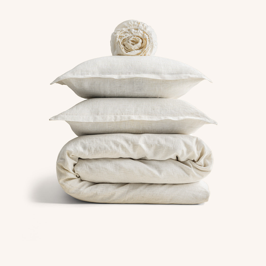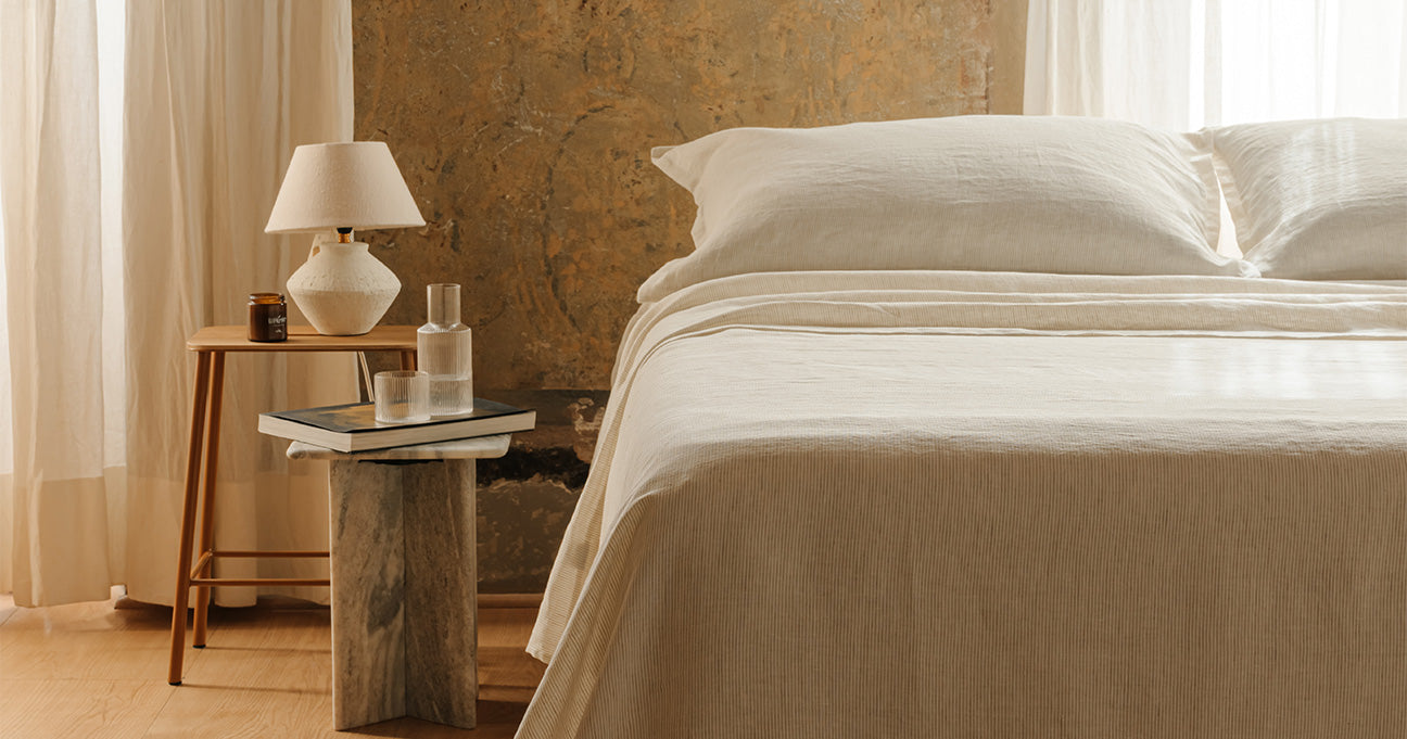 Tra le geometrie solenni di Santa Maria Novella e le facciate maestose di Santa Maria del Fiore, nasce Collezione Firenze: lenzuola in puro lino, dalle righe sobrie, raffinate, simboliche. Due varianti cromatiche essenziali, ispirate alla pietra serena, all’alabastro, ai chiaroscuri delle navate gotiche per un’estetica silenziosa, fatta di ordine, rigore e presenza.