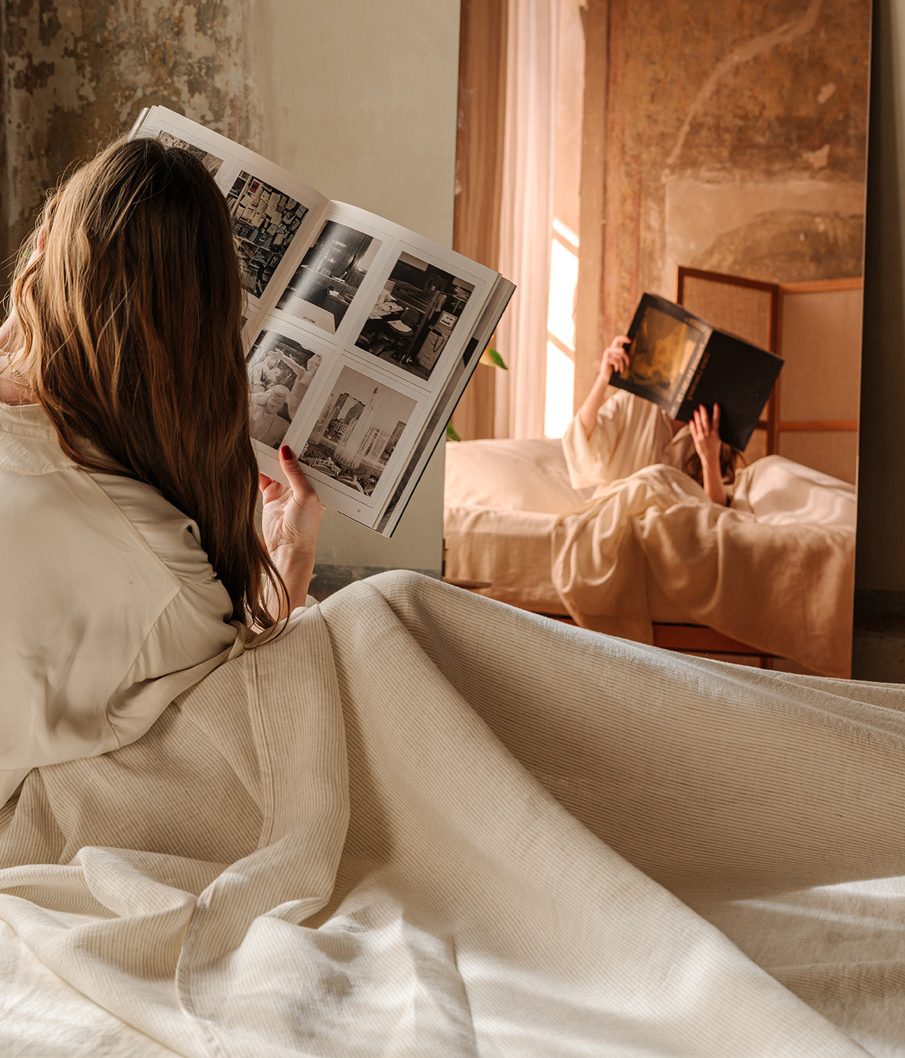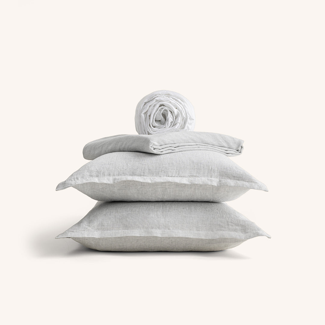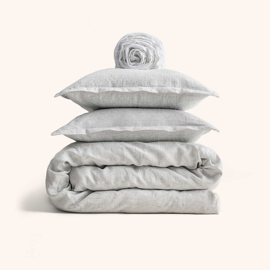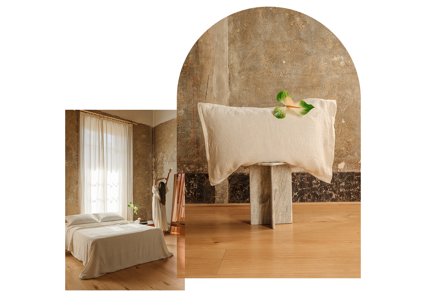 Tra le geometrie solenni di Santa Maria Novella e le facciate maestose di Santa Maria del Fiore, nasce Collezione Firenze: lenzuola in puro lino, dalle righe sobrie, raffinate, simboliche. Due varianti cromatiche essenziali, ispirate alla pietra serena, all’alabastro, ai chiaroscuri delle navate gotiche per un’estetica silenziosa, fatta di ordine, rigore e presenza.
